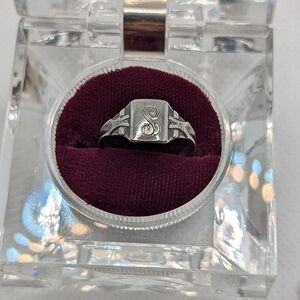 Elegant silver signet ring. dainty and small vintage. has been clipped at some point in its life. 924 sterling