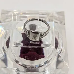 Elegant silver signet ring. dainty and small vintage. has been clipped at some point in its life. 924 sterling