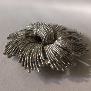 Significant vintage round textured silver-toned brooch, stamped Celebrity NY. In excellent condition with weight and quality.