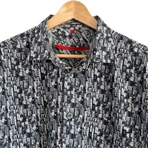 Step up your style with this Signum Men’s Shades of Grey Urban Graphics Short Sleeve Button-Up Shirt. Crafted from premium cotton, this shirt features a sleek collared design and an eye-catching urban graphic pattern in versatile shades of grey. Perfect for casual outings or adding a modern touch to your wardrobe, it offers breathable comfort and effortless style. This shirt is in excellent condition, ready to elevate any look with its contemporary edge.