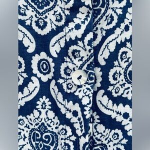 Sigrid Olsen 100% Linen Navy and White Belted Shirt Dress Sz M