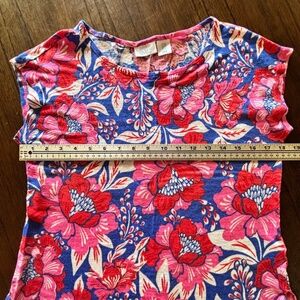 Sigrid Olsen 100% linen floral print rounded hem top size M