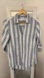 Sigrid Olsen linen blend button down, v-neck, long sleeve shirt with roll tabs, blue and white stripes, size small