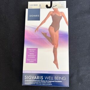 Sigvaris Well Being Knee High 15-20 mmHg Black B Sheer Compression Hoisery NEW