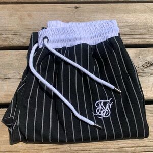 SikSilk Men’s Pinstripe Shorts Size M Black White Elastic Waist