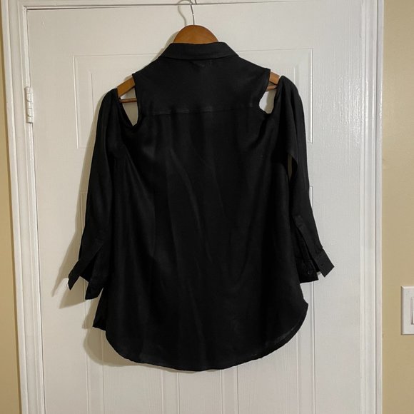 Silence + Noise Cold Shoulder Button-down Black Shirt