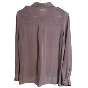 Silence + Noise Lilac High Low Sheer Utility Split Hem Button Up Blouse Sz L