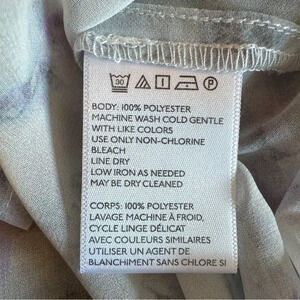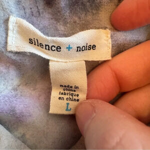 This size large utility-style blouse from silence + noise is in EUC and features a beautiful and artistic sheer pastel tie dye all over print. The thin and gauzy fabric is polyester and is super dreamy and fantasy-like, or even cloud-like. No visible flaws, see photos for measurements.