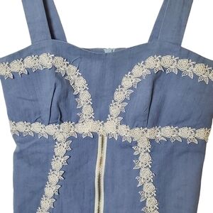 Silhouette Sphaget Strap Denim Dress with Scalloped Lace Size S