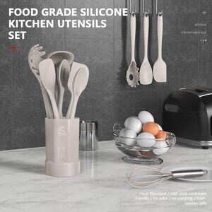 Food Grade Safe Silicone: Made of food-grade silicone; BPA-free; safe for contact with all types of food; this silicone cooking utensils set can withstand temperatures up to 446 °F; even if used in high-temperature frying environments; there is no need to worry about melting; these silicone utensils do not react with food or jams; will not retain odors or colors when stirring food products