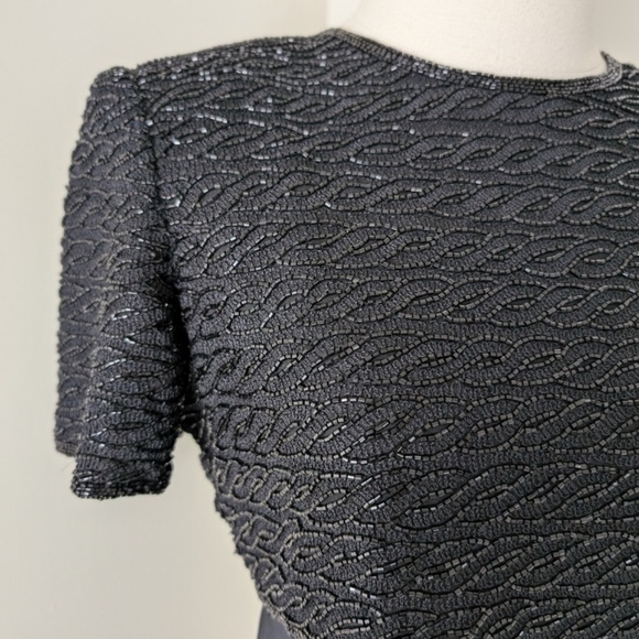 Silk Beaded Mini Dress Empire Waist Talbots Little Black Dress LBD