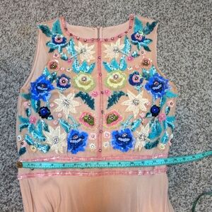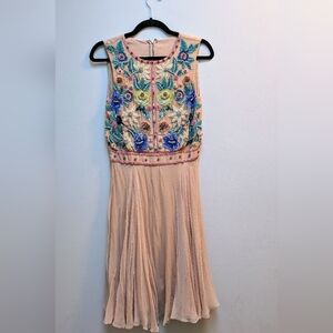 Dress by French Connection in light pink silk with stunning floral beaded & sequin embroidery. Absolutely stunning dress, perfect for a wedding or another spring/summer event.