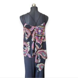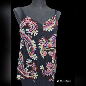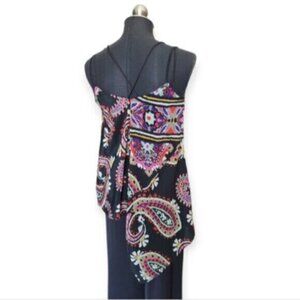 Silk HD IN PARIS Anthropologie "Moonset" Black Paisley Asymmetric Cami
