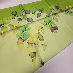 Silk Handpainted Rectangular Scarf in a two tone Green with a floral motif - NEW
