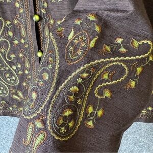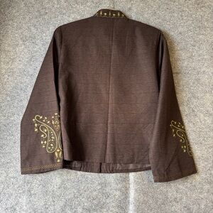 Silk Land Petite Brown Embroidered Mandarin Collar Boho Festival Jacket Size S