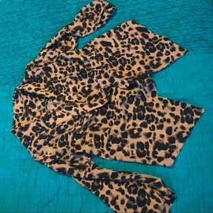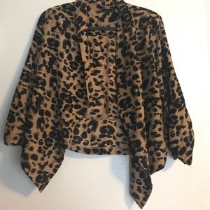 Silk Leopard Print 3/4 Sleeve Open From Blazer with Handkerchief Front