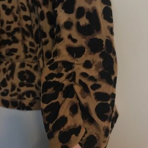 Silk Leopard Print Rouched 3/4 sleeve open blazer