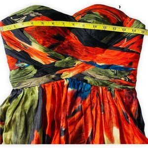 Silk Multicolor Floral Gown Strapless Formal Dress