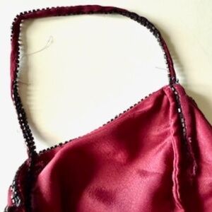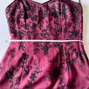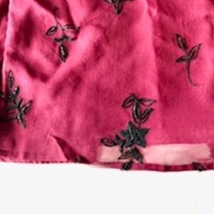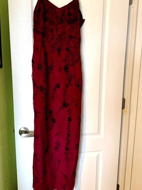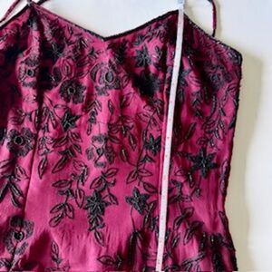 Wine colour Silk long gown dress with black embroidered seed beads with back slip opening