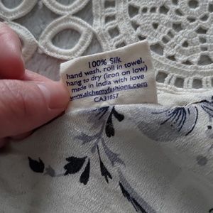 Recycled sari made in India. 100% Silk. Asymmetrical hem. Size small.