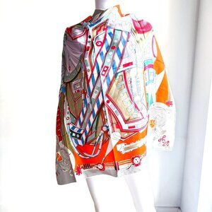 Silk Twill Geometric Print Colourful Hand Rolled Square Scarf