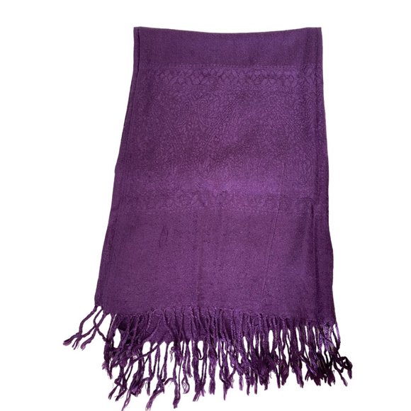 Silk and Cashmere Paisley Print Fringe Long Wrap Scarf Shawl Purple
