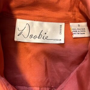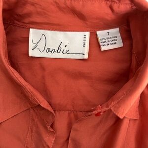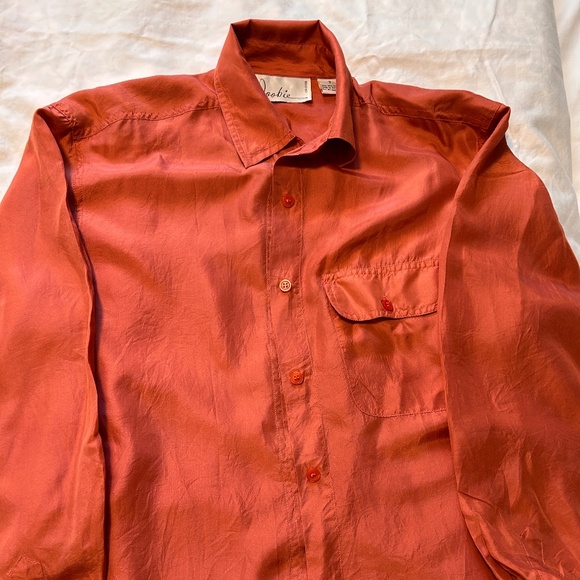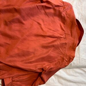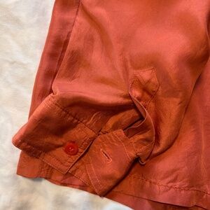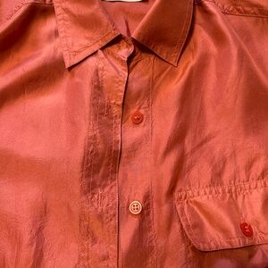 Beautiful coral orange silk blouse. Fits petite size Small.