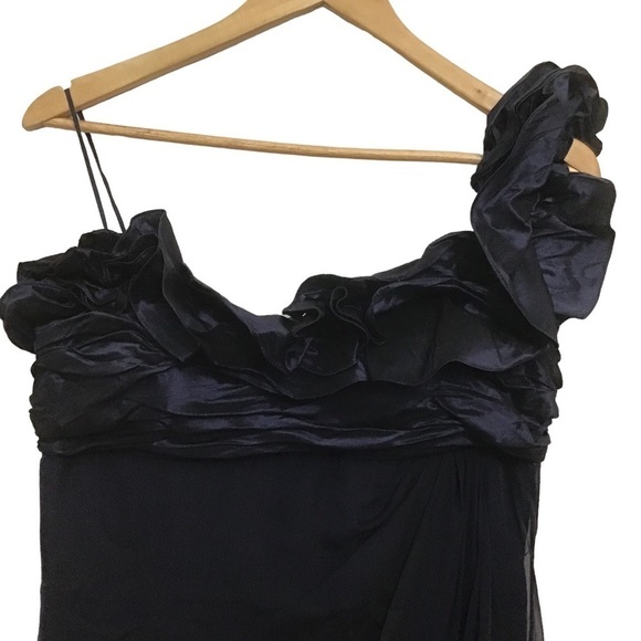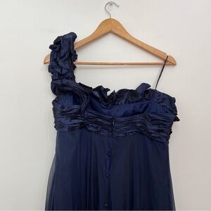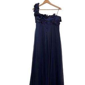 Silk maxi cocktail dress Rickie Freeman Teri Jon blue one shoulder woven size 12
