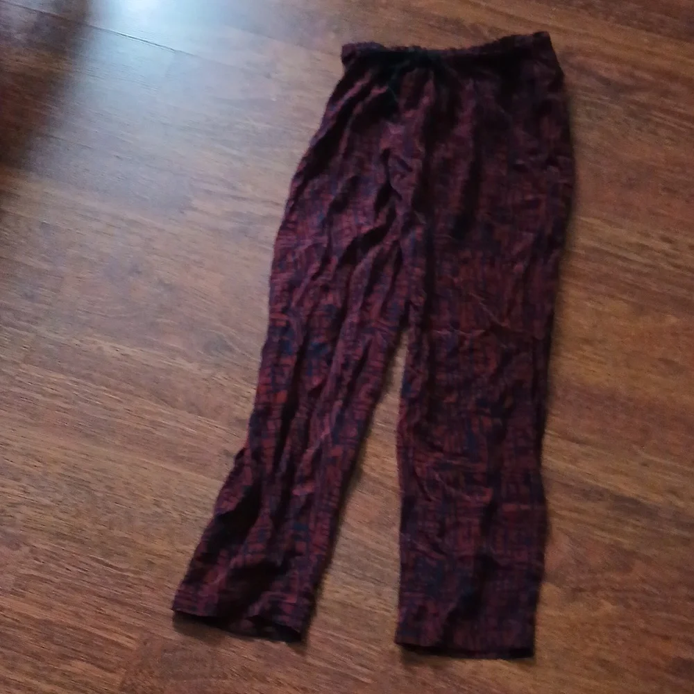 red and black abstract print silk 100% pants
