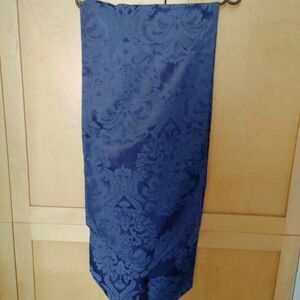 deep blue silk patterned table runner with tassle. approx 6ft.