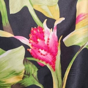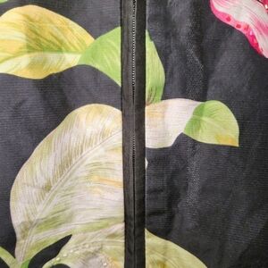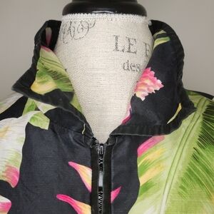 Black with Green & Pink Tropical Floral Print Zip-up Spring Summer Jacket with Beaded embellishment, by SilkLand.