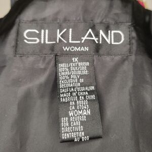 100% Silk shell, black polyester liner, notched sleeves & hemline, pop-up collar, beautiful hand beading, Very Good Condition, there's a patch of colour missing along the left side, not noticeable and could be filled in (last photo, Price Reflects), Plus Size 1X, Pit-23, Length-25.