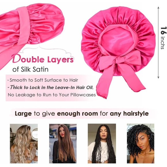 Silk-Satin Bonnet Hair Wrap for Sleeping with Bow Tie Band