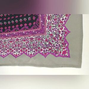 Vintage silk scarf with a grey background,purple pink pattern,hand made hem.