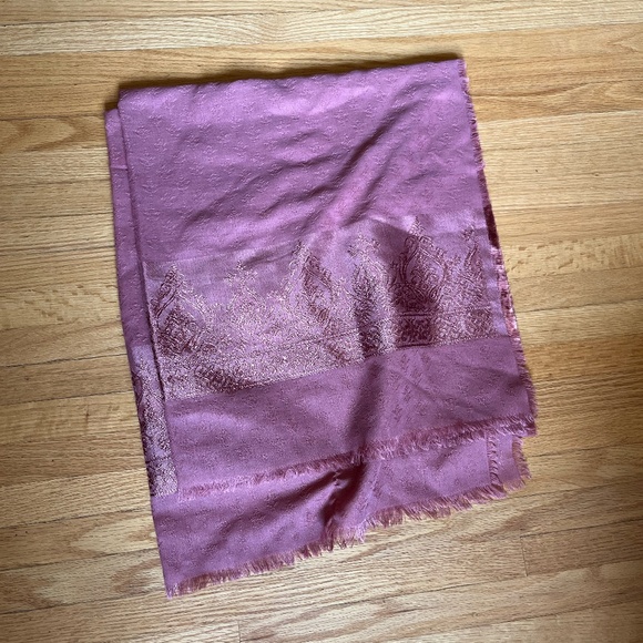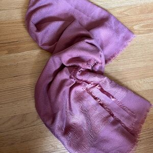 Rose-coloured silk-blend scarf. A gift from a friend who visited Berlin but the colour doesn't match my complexion. Colour captured best in last photo. Breathable material.