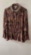 Silkland Women Velvet Burnout Button Up Shirt Large Brown Leaf Semi Sheer Fairy