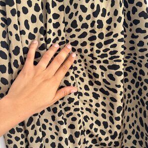 Worn, but great condition. Elastic waistband. Golden, flowly, silky looking animal print fabric. Over the knee skirt.