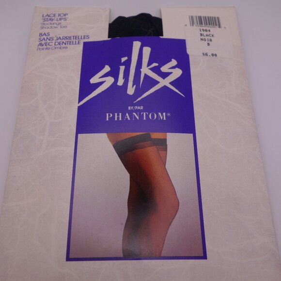 Silks by/par PHANTOM LACE TOP 'STAY-UPS' Stockings Shadow Toe Black Size B