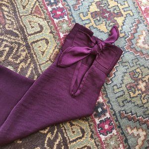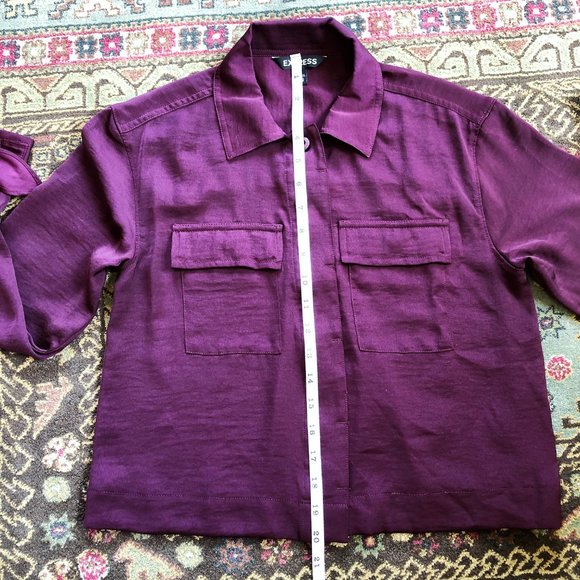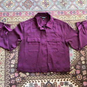 Silky Maroon Tie-Sleeve Button-Front Collared Blouse by Express