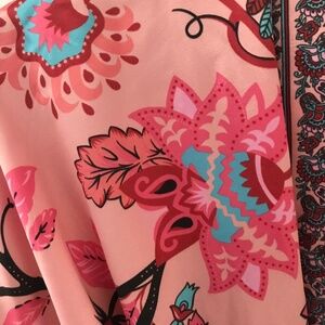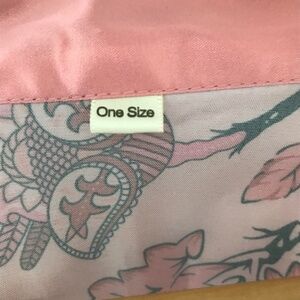 Never worn. Belted. I have no idea of the material, it is silky! Size? I would say L.