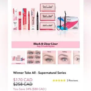 This pack contains 3 sets of their beautiful lashes. The glue and eyeliner (haven’t been used but just tested). It also includes a bag, scissors and tweezers to place the lashes. Lashes are also unworn. Just not for me 😊