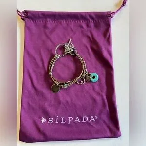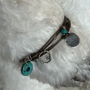 Silpada Bracelet with Turquoise and Silver Charms on Bronze Cords