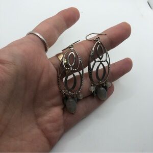 Silpada sterling silver infinity art nouveau style earrings with feldspar and abalone dangle accents.