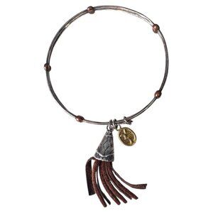 Crafted with an eye for elegance, this Silpada Sterling Silver 925 bangle bracelet shines with the addition of goldstone and pyrite accents. The bracelet's sleek design offers a versatile fit that complements any wrist, making it an ideal accessory for both casual and formal attire.The combination of the metallic sheen of sterling silver and the subtle sparkle of the stones lends a luxurious touch to this piece. Without the distraction of stones, the focus remains on the refined craftsmanship and the timeless style that Silpada is known for.