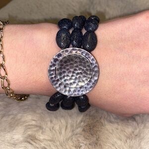 Silpada Sterling Silver Black Lava Rock & Beads Bracelet 3 strand 7” Length #b1511