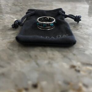 If you’re a fan of turquoise, you’ll love this Western-inspired ring featuring compressed turquoise and sterling silver. Perfect for adding a pop of color to any outfit.