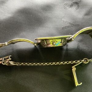 This Watch is all silver .925 except for the face on the Watch. I’m débating on letting it go as ive had this pièce for many years now but just not wearing it . At my work no jewellery so with a Heavy heart it needs to go . The silver on the Watch is so bright I cant seem to get a pic with no réflection on the pièce. Ive taken multiple pictures to show you what the Watch looks like close up. Its a Timeless pièce Will be in style for many years to come. I’m asking 200$ but probably worth far more Silpada always has great workmanship.
