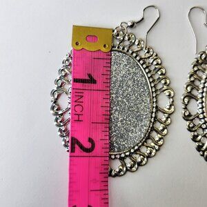 Silve and Black Oval Earrings Gold Filigree Oval Earrings Large Glitter Earrings