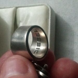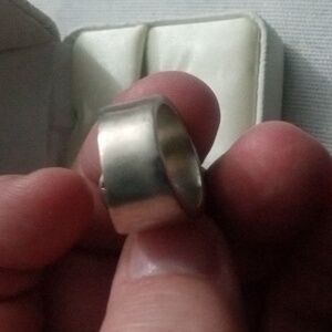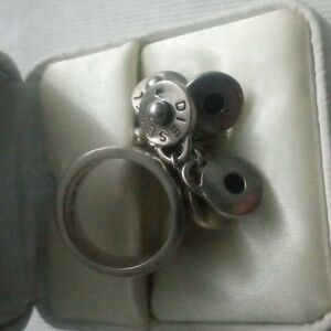 silver ring featuring unique engraved rivets ..very heavy think ring ..very small 4.5 or sz.5 not sure .. 925 silver marked most sell upwards of 175