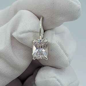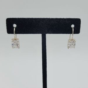 Silver 925 Earrings Rectangular Crystal Leverback Earrings #1208